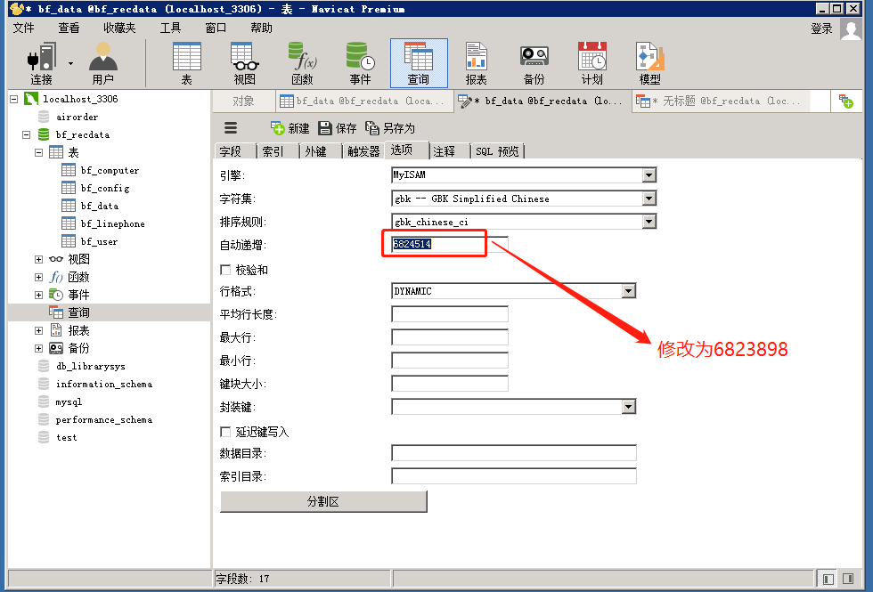 发现数据ID自增到6823898.但是实际ID已经增加到6824514,也就是数据库没有插入数据成功,导致ID自增与实际ID不符。听同事说这台机器这两天断过电,估计应该是SQL在写入的时候断电导入的SQL写入异常,修复自增ID至6823898。