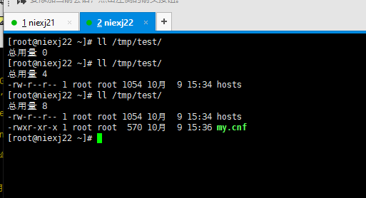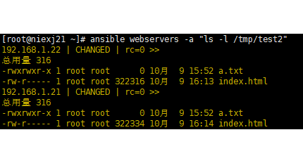 [root@niexj21 ~]# ansible webservers -a "ls -l /tmp/test2"