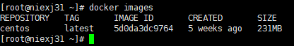 [root@niexj31 ~]# docker run -it --name centos1 centos:latest bash