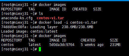 [root@niexj31 ~]# docker load -i centos-v1.tar