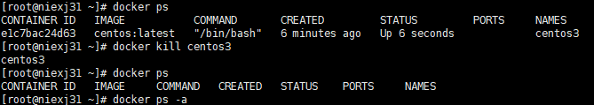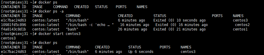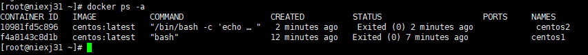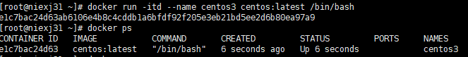 [root@niexj31 ~]# docker run -itd --name centos3 centos:latest /bin/bash