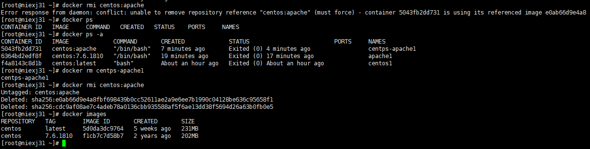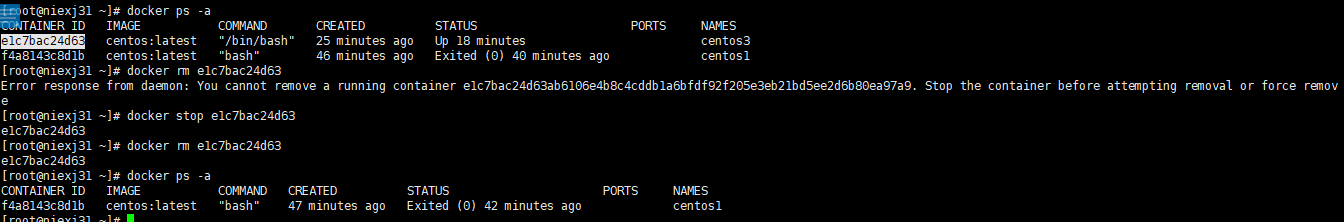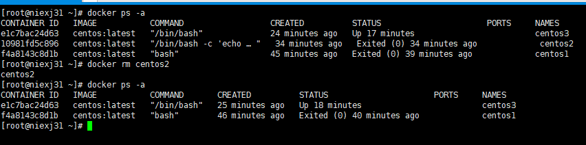 [root@niexj31 ~]# docker rm e1c7bac24d63