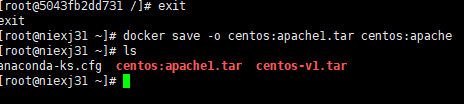 [root@niexj31 ~]# docker save -o centos:apache1.tar centos:apache