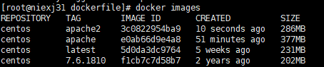 [root@niexj31 dockerfile]# docker build -t centos:apache2 .