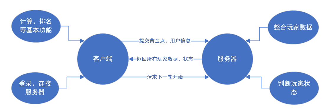 黄金点的计算以及得分排名的计算等都在客户端本地完成。