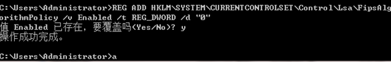 HKLM\SYSTEM\CURRENTCONTROLSET\Control\Lsa\FipsAlgorithmPolicy /v Enabled /t REG_DWORD /d "0"