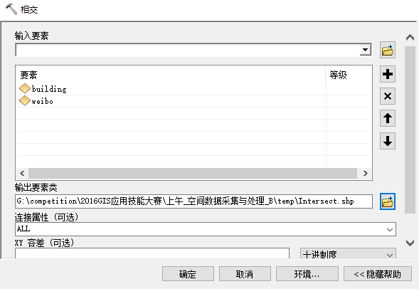 6、 将建筑物图层与微博签到点图层进行相交得到建筑物内的微博签到点数据。