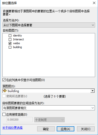 方法二:按位置选择微博签到数据与建筑物数据相交的数据,再将其导出。