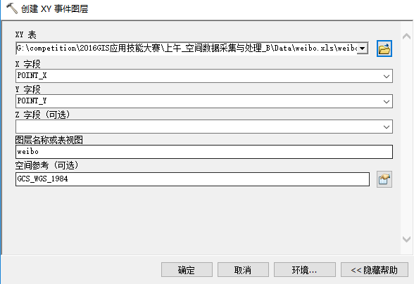 5、 添加微博XY坐标数据为事件,再导出数据为图层要素,可视化微博签到点数据。