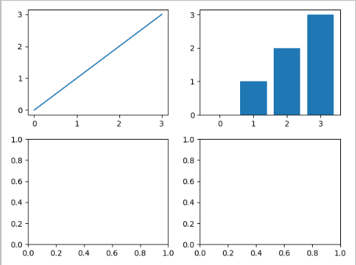 可以看到,我们虽然只使用到了两个坐标,但实际上 subplots 还是会帮我们将 4 个坐标全都创建出来。