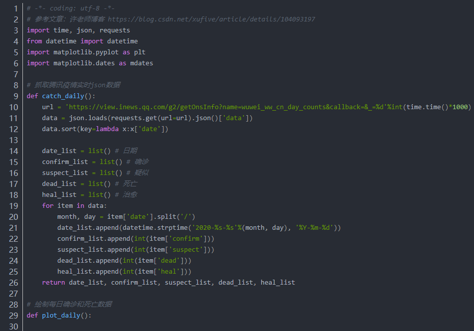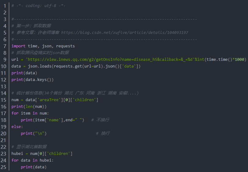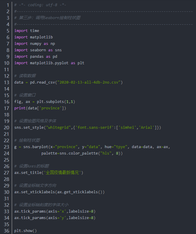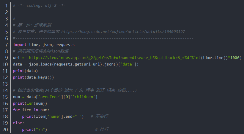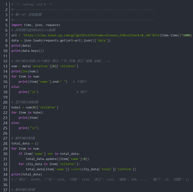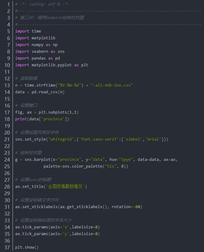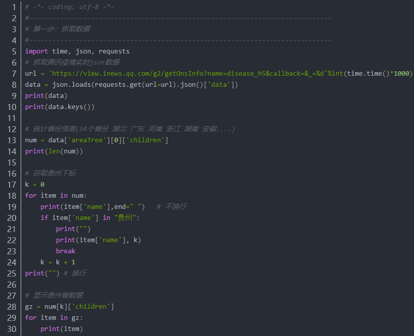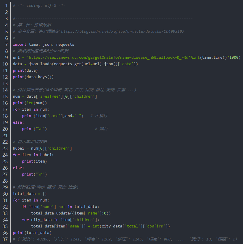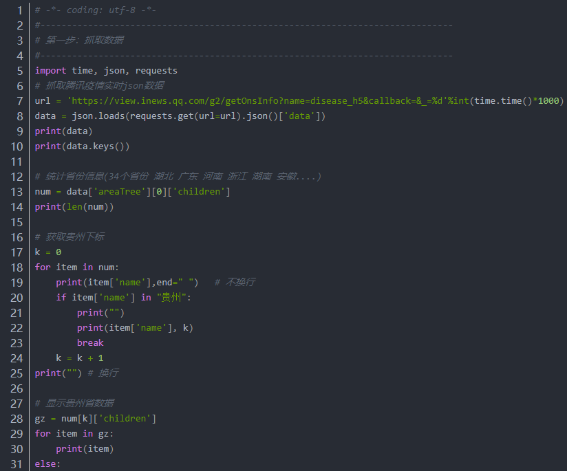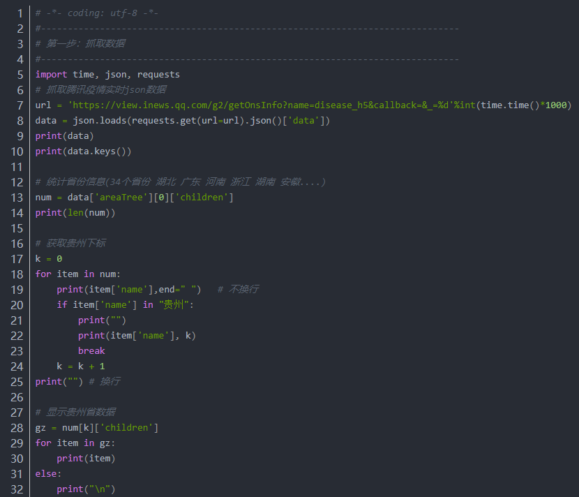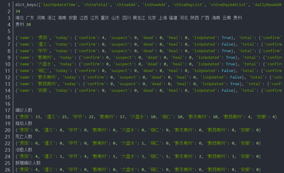 本篇文章将分享腾讯疫情实时数据抓取,获取全国各地和贵州省各地区的实时数据,并将数据存储至本地,最后调用 Maplotlib和Seaborn