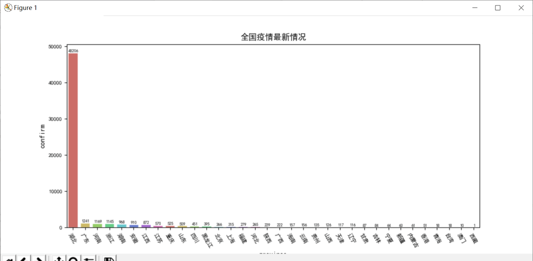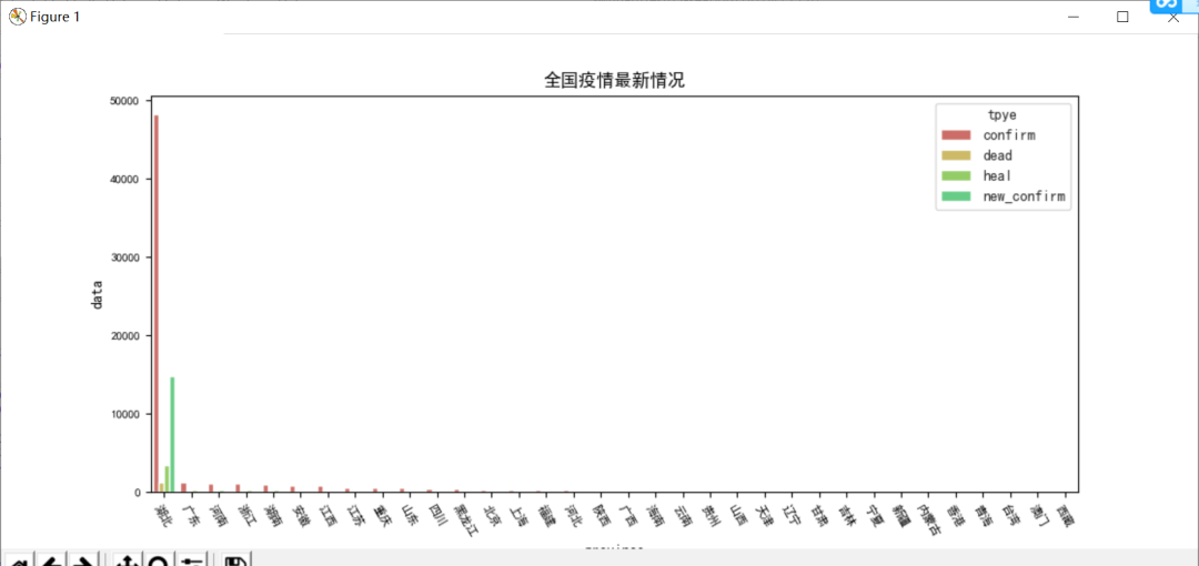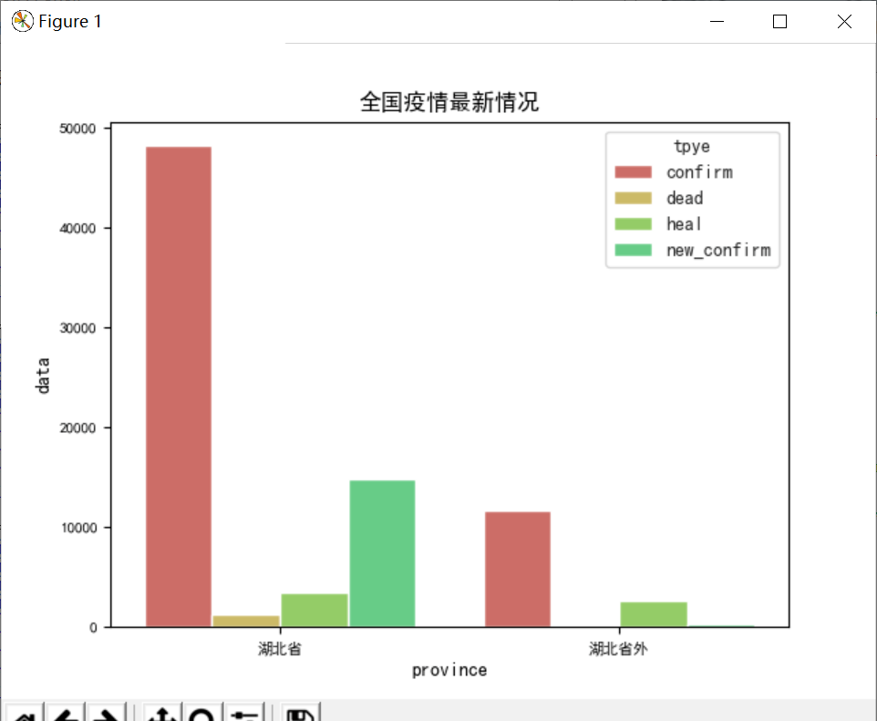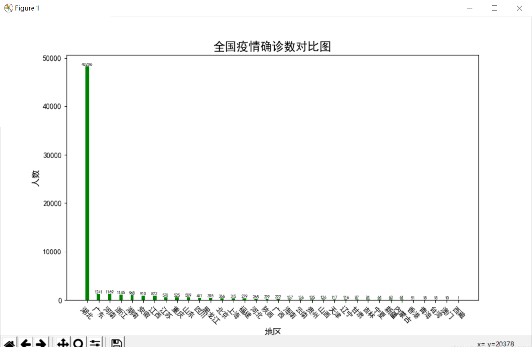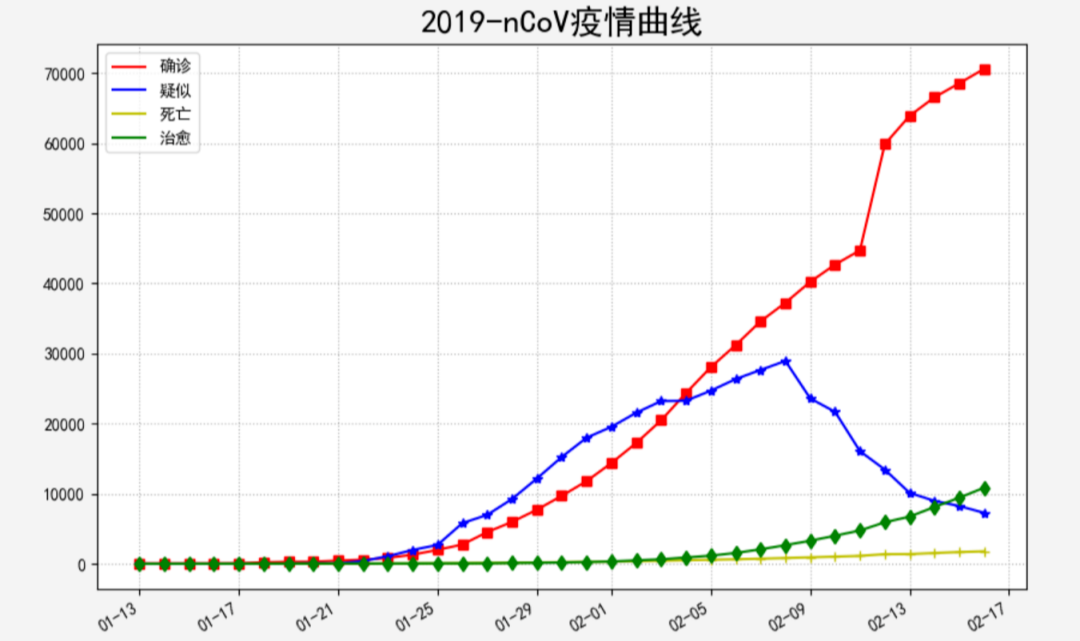 输出结果如下图所示,疑似人数开始下降。武汉加油,中国必胜!