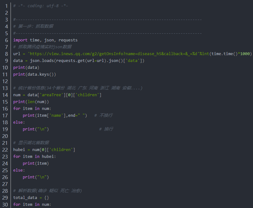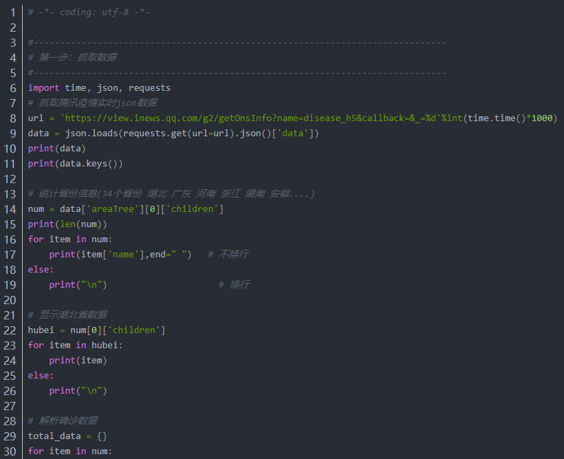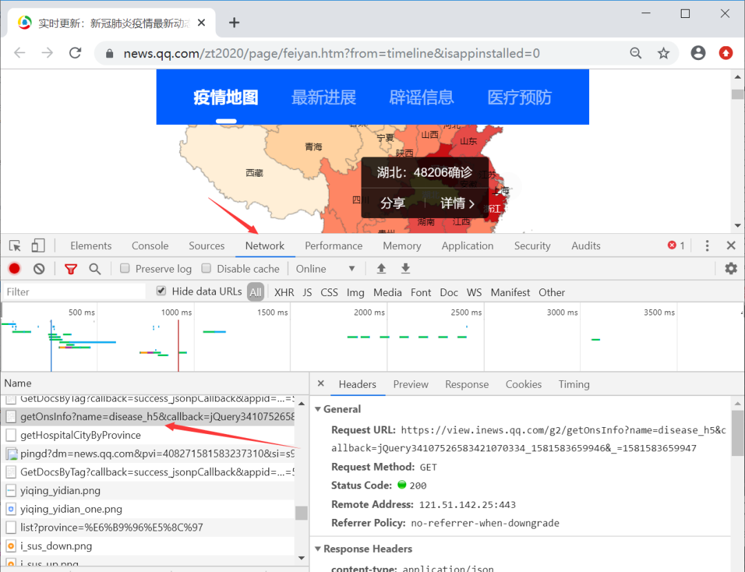 我们的目标网站是腾讯新闻网实时数据,其原理主要是通过 Requests获取Json请求 ,从而得到各省、各市的疫情数据。