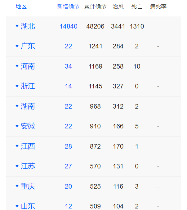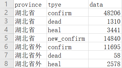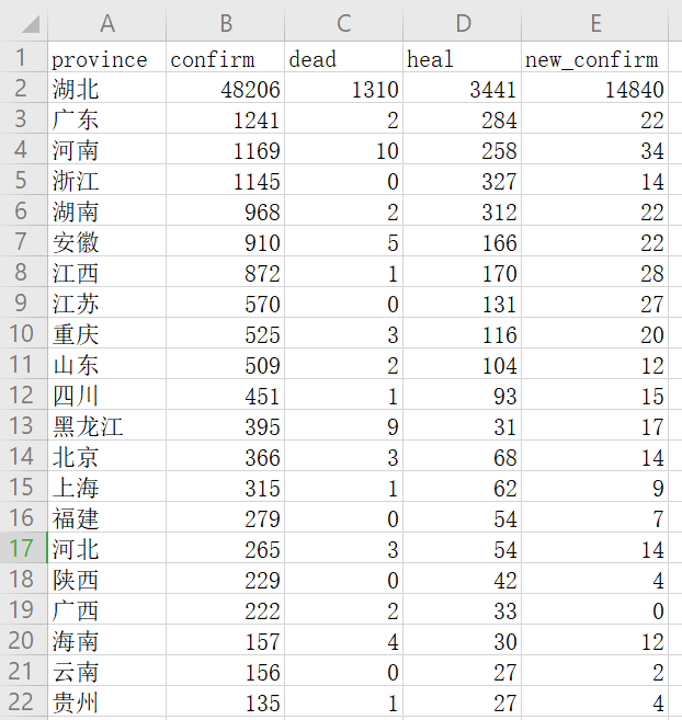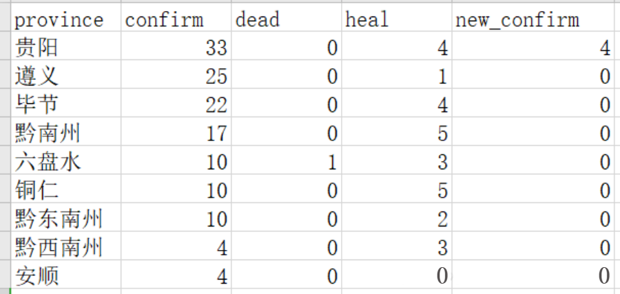 输出结果如下图所示,其顺序按照确诊人数排序。