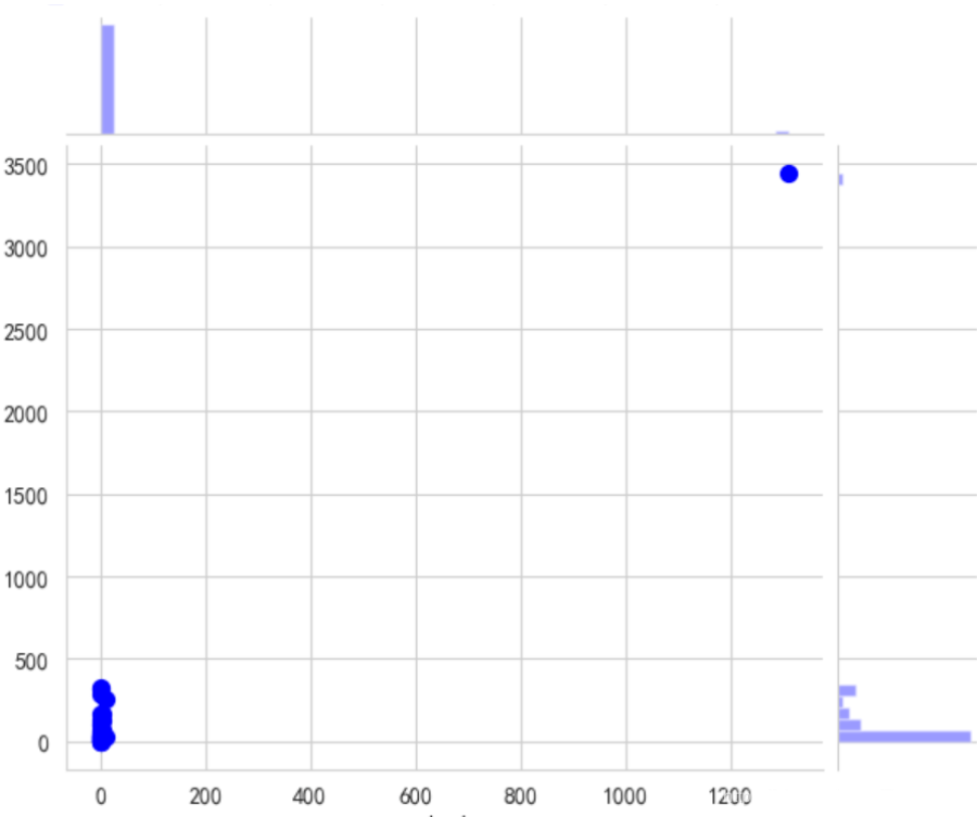 sns.jointplot(x=“dead”, y=“heal”, data=data, color=“b”, s=50, kind=‘scatter’, space = 0.1, size = 8, ratio = 5)