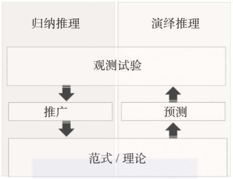 如图1-4所示, 数学思维是演绎性的 (即,它通过应用一般定律或原则来推断某一特定实例), 而统计推理是归纳性的