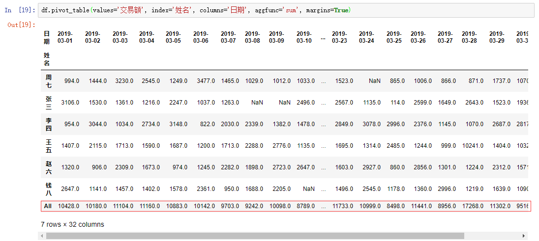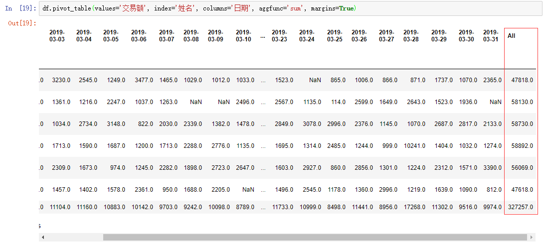 margin=True 会在结果中多加一行和一列