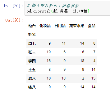交叉表是一种特殊的透视表,往往用来统计频次,也可以使用参数 aggfunc 指定聚合函数实现其他功能。