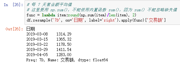 on : 指定根据哪一列进行重采样,默认根据 index 进行重采样,如果进行指定,要求该列数据为日期时间类型
