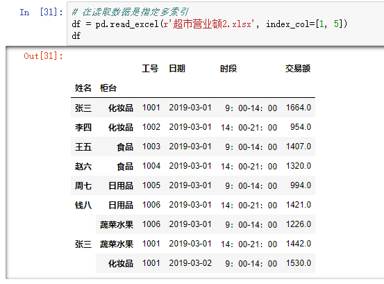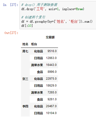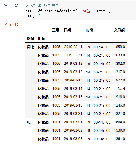 DataFrame 结构支持多个索引,既可以 在读取数据时使用 index_col 指定多列 ,也可以 通过 groupby() 方法分组时指定多个索引 。对于含有多个索引的 DataFrame 结构,在 使用 sort_index() 方法按索引排序 、 使用 groupby() 方法进行分组 时,都可以 使用参数 level 指定哪一级索引进行排序或分组