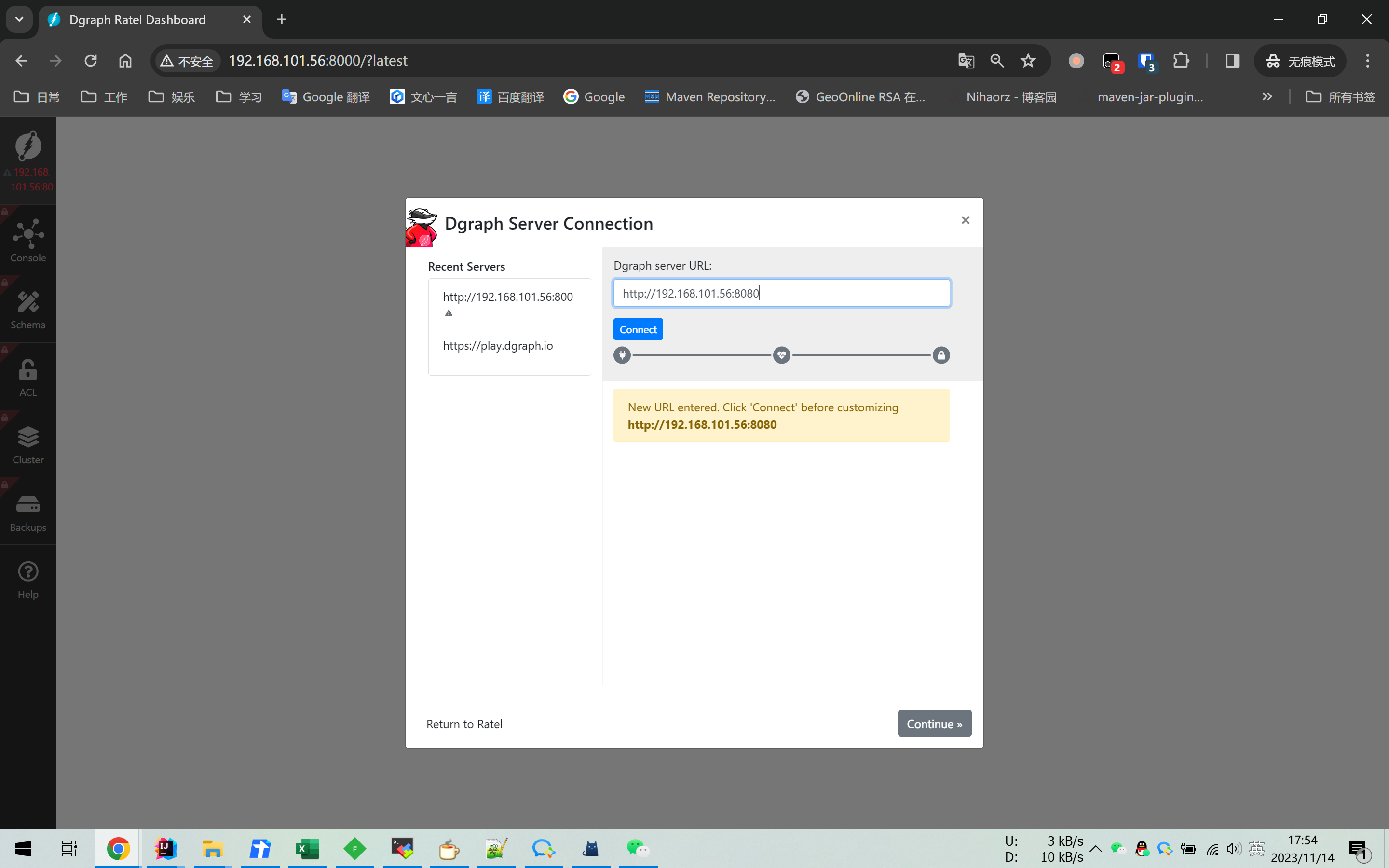 Dgraph server URL 填写 http://ip:8080 点击 Connect 连接 server