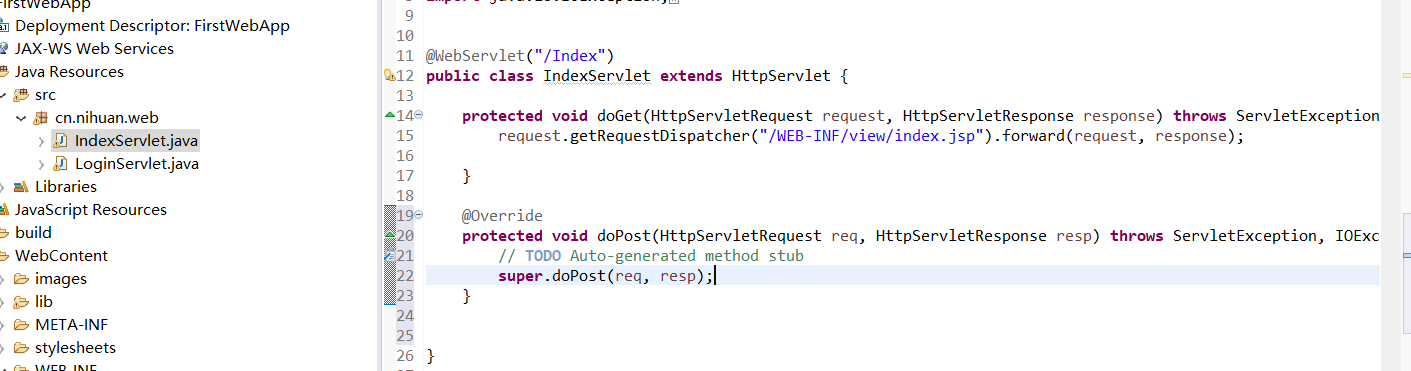 比如上图就是doGet方法将客户请求转到WEB INF里的index.jsp里