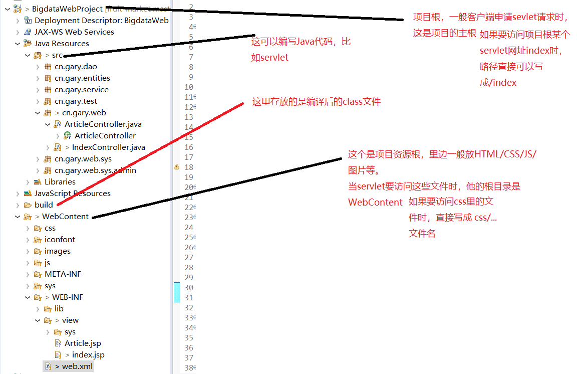 Web项目的基本结构,src里保存的都是java代码, WebContent里都是 html/css/js等