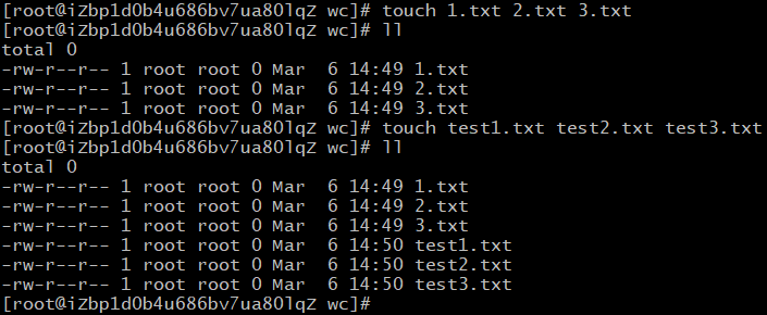 touch 1.txt 2.txt 3.txt touch test1.txt test2.txt test3.txt