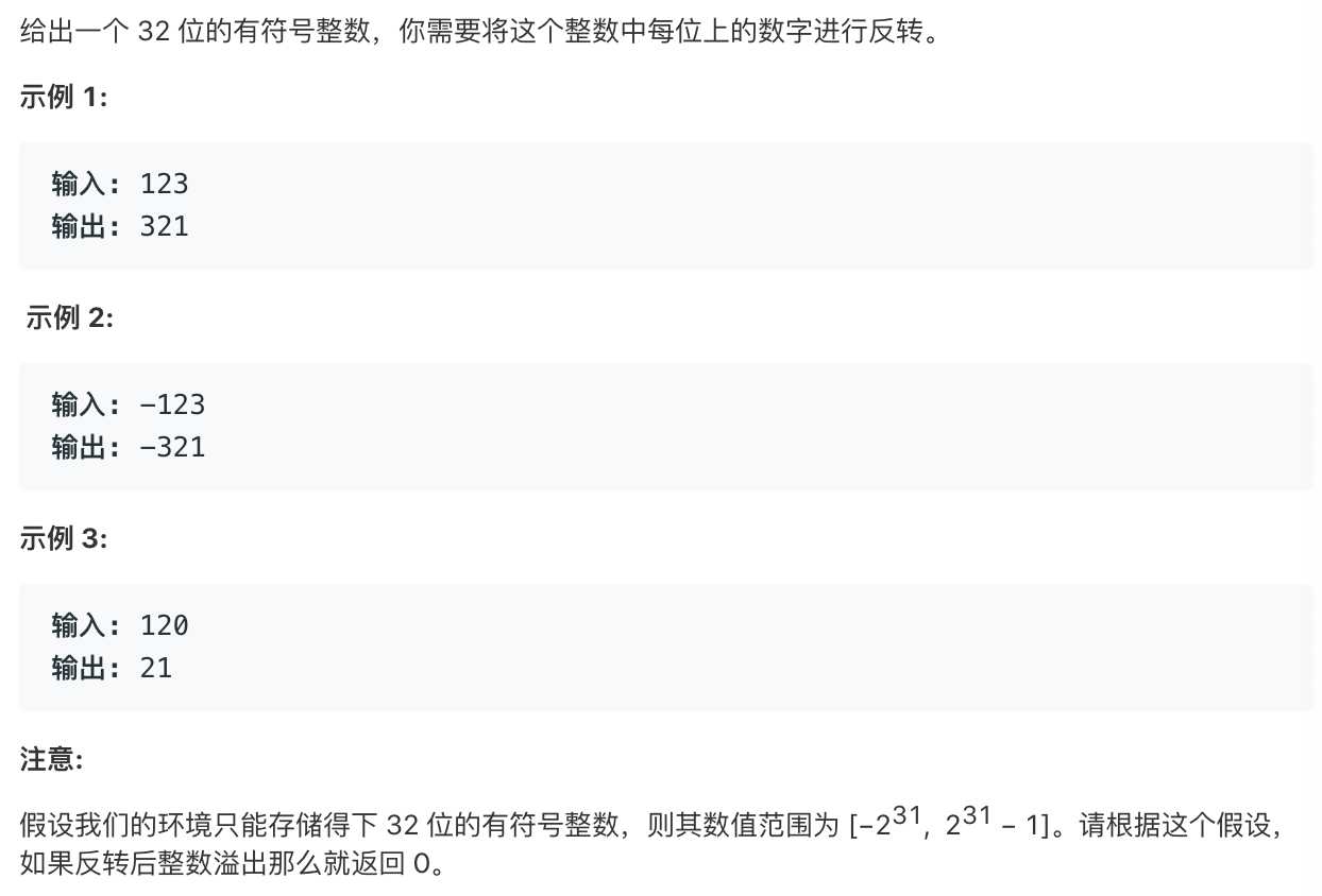 先将整数变成字符串,然后对字符串取反,再把字符串转为整数。这里在对字符串操作时,要考虑负数情况,同时对结果进行最大最小判断。