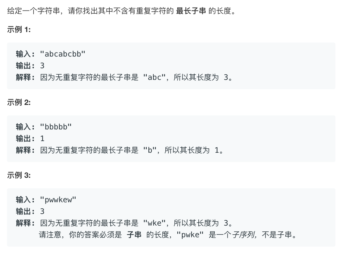 leetcode 每日一题 3. 无重复字符的最长子串