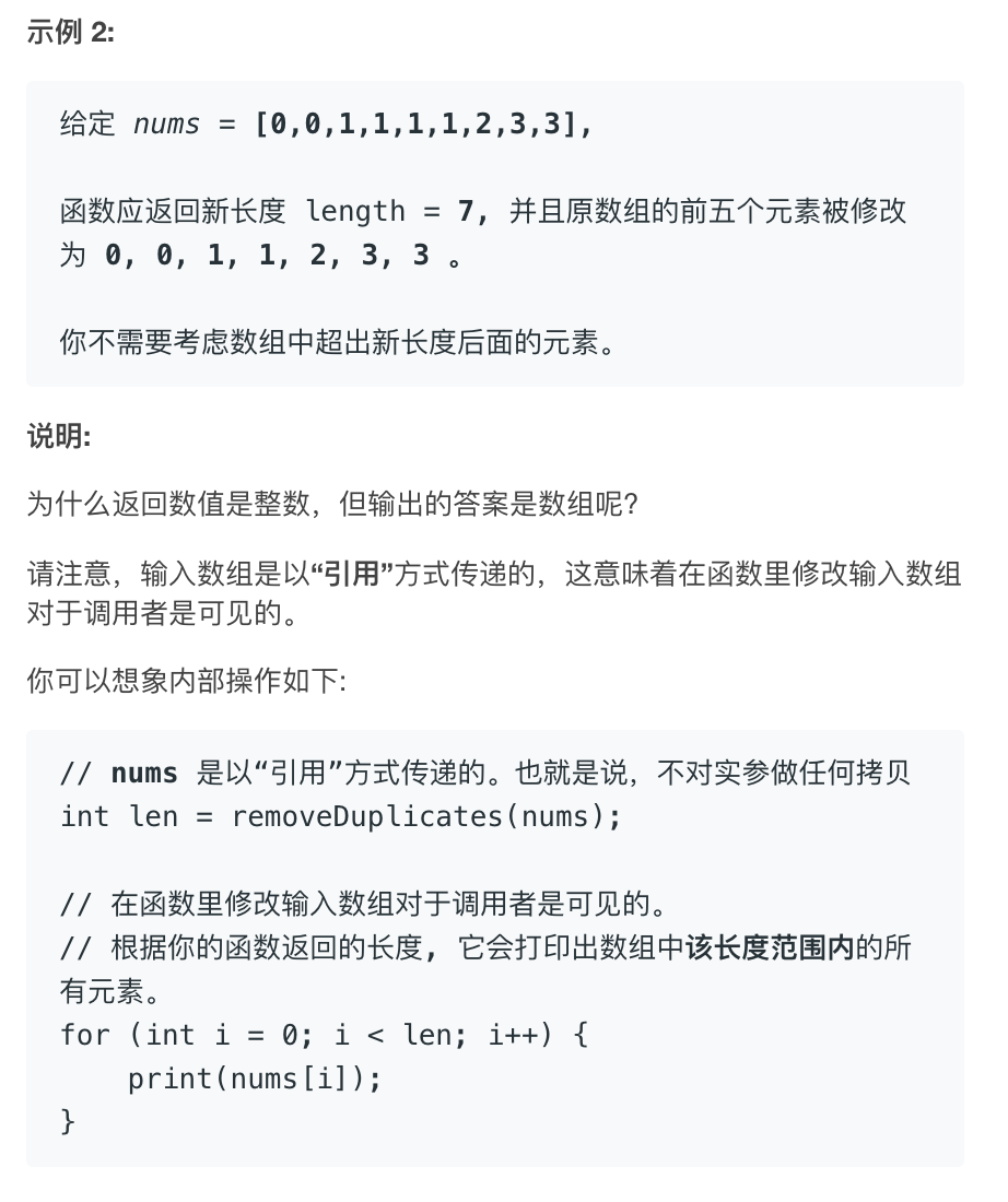 双指针覆盖多余重复项,一个指针i负责遍历,一个指针j负责要覆盖的重复项位置。