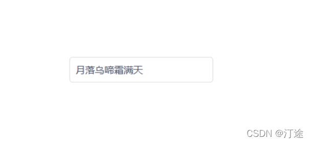 1 <template> 2 3 <div class="mainBody"> 4 <Input v-model="msg"/> 5 </div> 6 </template> 7 <script> 8 export default { 9 data(){ 10 return{ 11 msg:'月落乌啼霜满天' 12 } 13 } 14 } 15 </script> 16 ———————————————— 17 版权声明:本文为CSDN博主「汀途」的原创文章,遵循CC 4.0 BY-SA版权协议,转载请附上原文出处链接及本声明。 18 原文链接:https://blog.csdn.net/m0_47323674/article/details/121816439