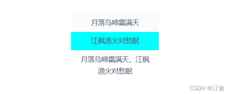 1 <template> 2 3 <div class="mainBody"> 4 <h3>{{ msg }}</h3> 5 </div> 6 </template> 7 <script> 8 export default { 9 data(){ 10 return{ 11 msg:'月落乌啼霜满天', 12 } 13 } 14 } 15 </script> 16 ———————————————— 17 版权声明:本文为CSDN博主「汀途」的原创文章,遵循CC 4.0 BY-SA版权协议,转载请附上原文出处链接及本声明。 18 原文链接:https://blog.csdn.net/m0_47323674/article/details/121816439
