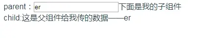 1 <template> 2 <div> 3 parent:<input type='text' v-model="content">下面是我的子组件 4 <childSon :content='content' ></childSon> 5 </div> 6 </template> 7 <script> 8 import childSon from './Childs' 9 export default { 10 name:'Parent', 11 components:{ 12 childSon 13 }, 14 data() { 15 return { 16 content:'er' 17 }; 18 }, 19 } 20 </script>