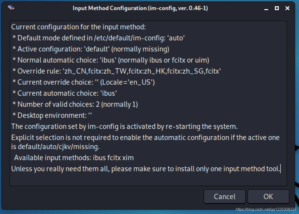 点击“Close”后,重启Kali完成输入法配置