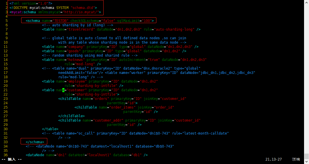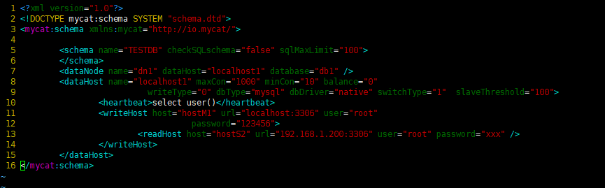 vim /usr/local/mycat/conf/schema.xml