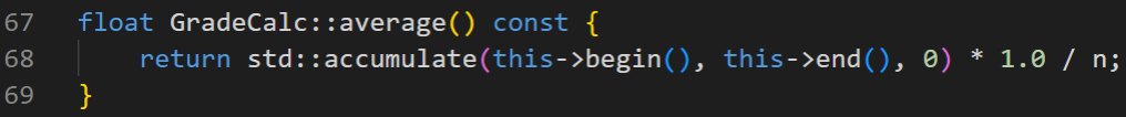 问题1:派生类GradeCalc定义中,成绩存储在哪里?派生类方法sort, min, max, average,output都要访问成绩,是通过什么接口访问到每个成绩的?input方法是通过什么接口实现数据存入对象的?问题2:代码line68分母的功能是?去掉乘以1.0代码,重新编译、运行,结果有影响吗?为什么要乘以1.0?