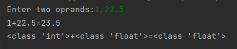 x,y=eval(input('Enter two oprands:')) ans=x+y print(f'{x}+{y}={ans}') print(f'{type(x)}+{type(y)}={type(ans)}')