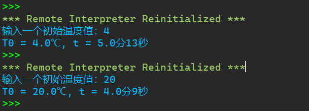 1 #煮出完美的鸡蛋 2 p, c, K = eval('1.038, 3.7, 0.0054') 3 M, m, Tw = eval('47, 67, 100') 4 Ty = int('70') 5 T0 = float(input('输入一个初始温度值:')) 6 7 import math 8 pi = math.pi 9 t1 = (M**(2/3))*c*(p**(1/3)) 10 t2 = (K*(pi**2)*(((4*pi)/3)**(2/3))) 11 t3 = ((T0-Tw)/(Ty-Tw))*0.76 12 t4 = math.log(t3) 13 14 t = (t1/t2)*t4 15 ta = t//60 16 tb = int(t - ta*60 +0.5) 17 print(f'T0 = {T0}℃, t = {ta}分{tb}秒')