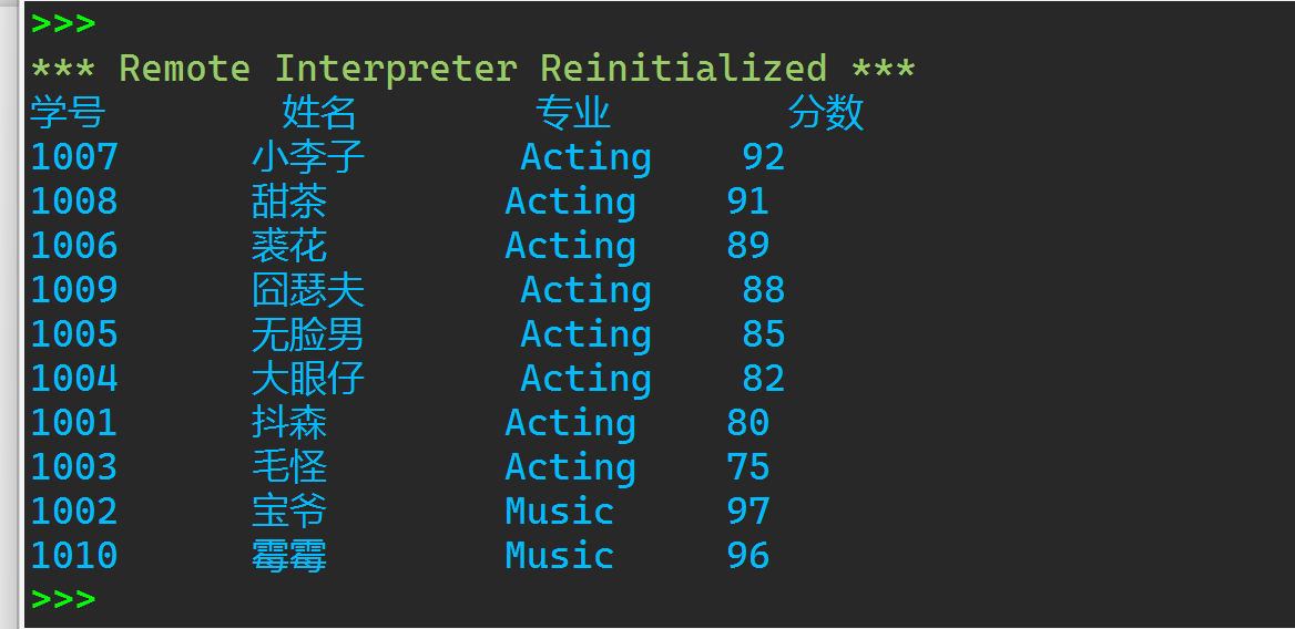 1 import csv 2 3 title = [] 4 info = [] 5 6 with open('data7.csv','r',encoding = 'gbk') as f: 7 f_reader = csv.reader(f) 8 for line in f_reader: 9 info.append(line) 10 x = info.pop(0) 11 title.append(x) 12 13 info.sort(key = lambda x : (x[2],-int(x[3]))) 14 15 16 with open('data7_processed.csv','w',encoding = 'gbk',newline='') as f: 17 f_writer = csv.writer(f) 18 f_writer.writerow(title[0]) 19 f_writer.writerows(info) 20 for i in title[0]: 21 print('%-10s'%i, end= '') 22 print() 23 for i in info: 24 for x in i: 25 print('%-10s'%x,end= '') 26 print()