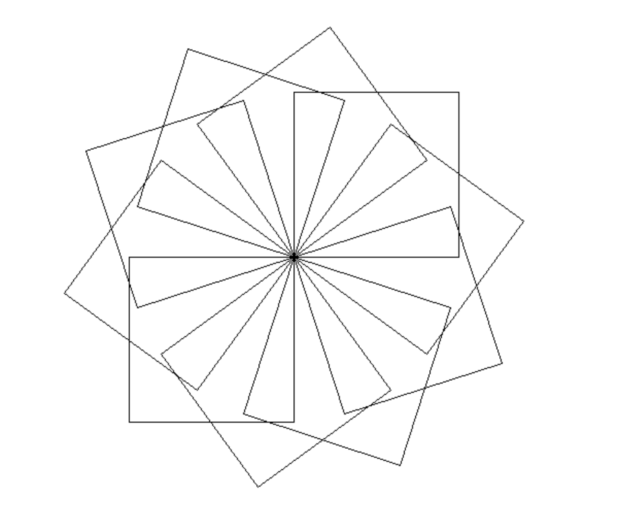 1 from turtle import * 2 3 def square(size = 50, rgb = 'black'): 4 5 pencolor(rgb) 6 for i in range(4): 7 fd(size) 8 left(90) 9 10 def main(): 11 setup(800, 600) 12 speed(0) #调整速度 13 14 n = 10 15 for i in range(n): 16 square(160) 17 left(360/n) 18 19 hideturtle() 20 done() 21 22 main()
