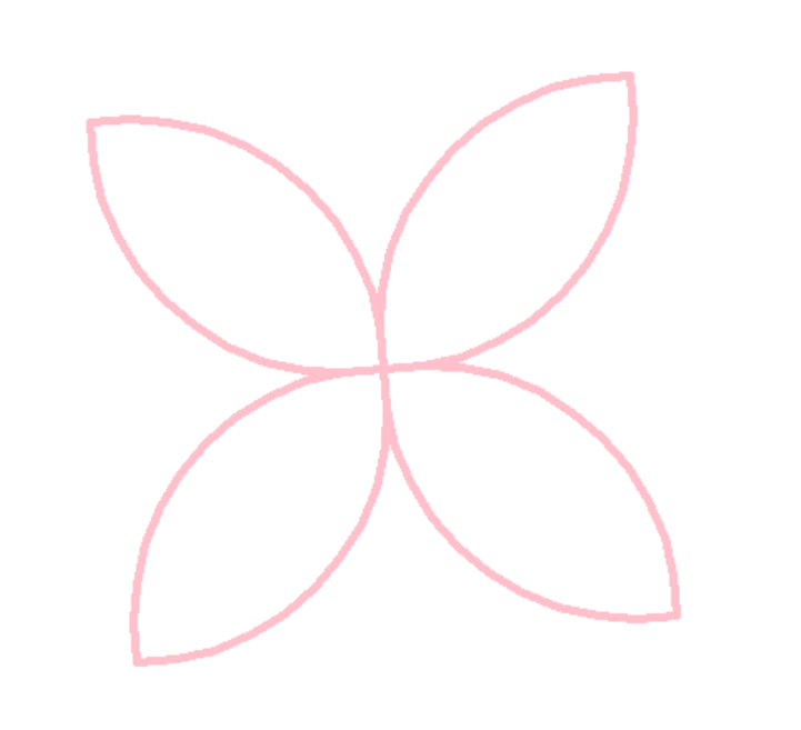 1 from turtle import * 2 3 setup(800, 600) 4 pencolor('pink') 5 pensize(5) 6 speed(0) 7 8 n = 4 9 for i in range(4): 10 for j in range(2): 11 circle(150, 100) 12 left(80) 13 14 right(360/n) 15 16 hideturtle() 17 done()