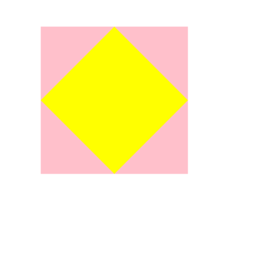 1 from turtle import * 2 from math import * 3 4 setup(800, 600) 5 6 def moveto(x, y): 7 penup() 8 goto(x, y) 9 pendown() 10 11 def square(lenth, encolor, bccolor): 12 pencolor(encolor) 13 color(bccolor) 14 begin_fill() 15 for i in range(4): 16 fd(lenth) 17 left(90) 18 end_fill() 19 20 def main(): 21 moveto(-100, 0) 22 square(200, 'blue', 'pink') 23 moveto(0, 0) 24 left(45) 25 square(100*sqrt(2), 'blue', 'yellow') 26 27 hideturtle() 28 done() 29 30 main()