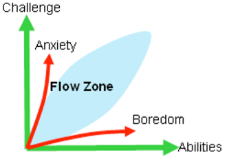 上图就是心流通道,当技能高于挑战的时候,离开心流通道的区域被认为是“无聊的”,当挑战高于技能时,离开心流通道的区域被认为是“焦虑的”。