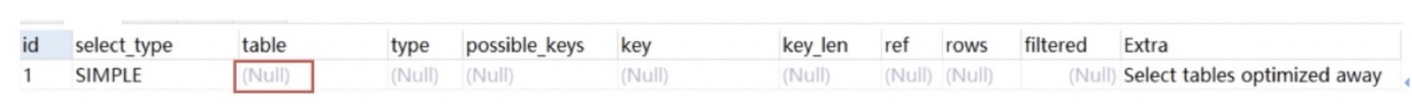 mysql能够在优化阶段分解查询语句,在执行阶段用不着再访问表或索引。例如:在索引列中选取最小值,可以单独查找索引来完成,不需要在执行时访问表