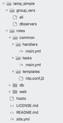 为了避免代码重复,roles能够实现代码重复被调用。定义一个角色叫websrvs,第二个角色叫phpappsrvs,第三个角色叫dbsrvs。那么调用时如下来调用: