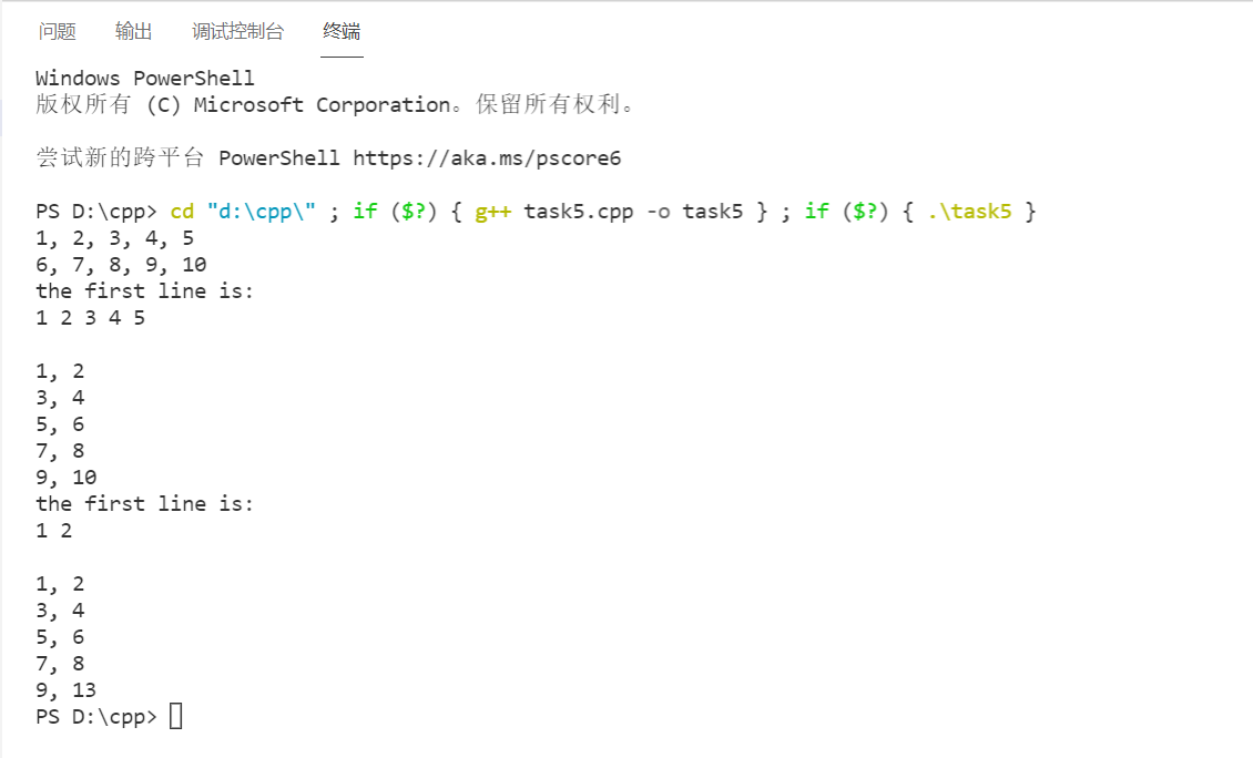 #include "Matrix.hpp" #include <iostream> int main(){ using namespace std; double x[]={1,2,3,4,5,6,7,8,9,10}; Matrix m1(2,5); m1.set(x); m1.print(); cout<<"the first line is: "<<endl; for(int i=0;i<5;i++) cout<<m1.at(0,i)<<" "; cout<<endl; cout<<endl; Matrix m2(5,2); m2.set(x); m2.print(); cout<<"the first line is: "<<endl; cout<<m2.at(0,0)<<" "<<m2.at(0,1)<<endl; cout<<endl; Matrix m3(m2); m3.set(4,1,13); m3.print(); }