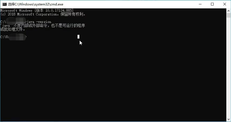4,测试是否卸载成功,输入Java -version的命令,如果如下图所示则卸载成功。