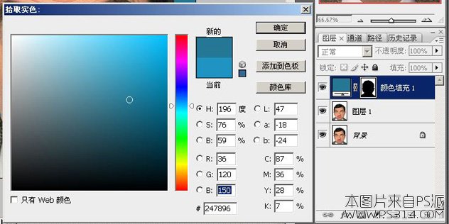 设置我们想要的背景颜色,以蓝色为例,在拾色器上移动滑块,直到找到我们满意的颜色。