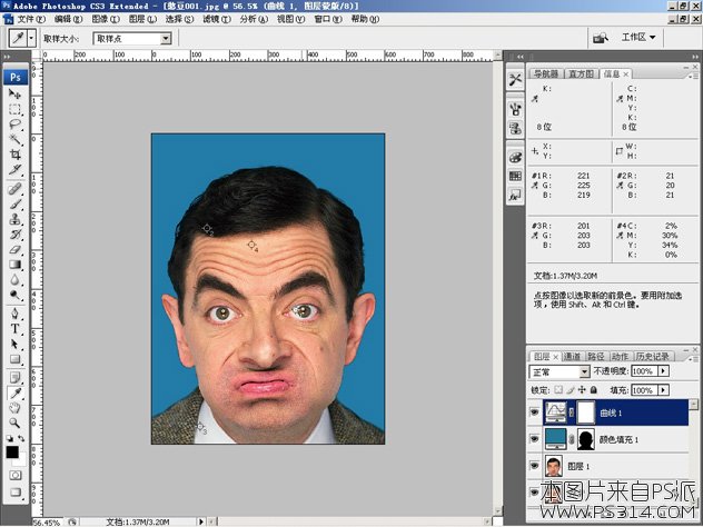 用曲线调整图层整体调一下色,让照片看起来更真实。